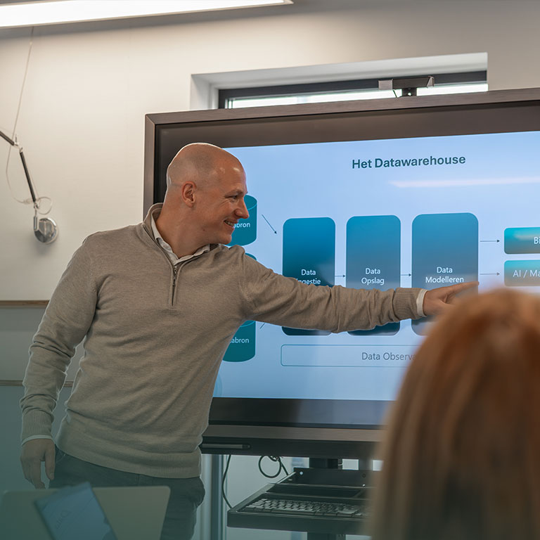 De eerste stap is het verkrijgen van inzichten in uw organisatie., processen en ambities. Vervolgens ontwikkelen we samen een datastrategie die aansluit bij de uw visie, infrastructuur en mensen. Door te werken in heldere stappen, van analyse en ontwerp tot implementatie en beheer, zorgen we transparantie, controle en meetbare resultaten.